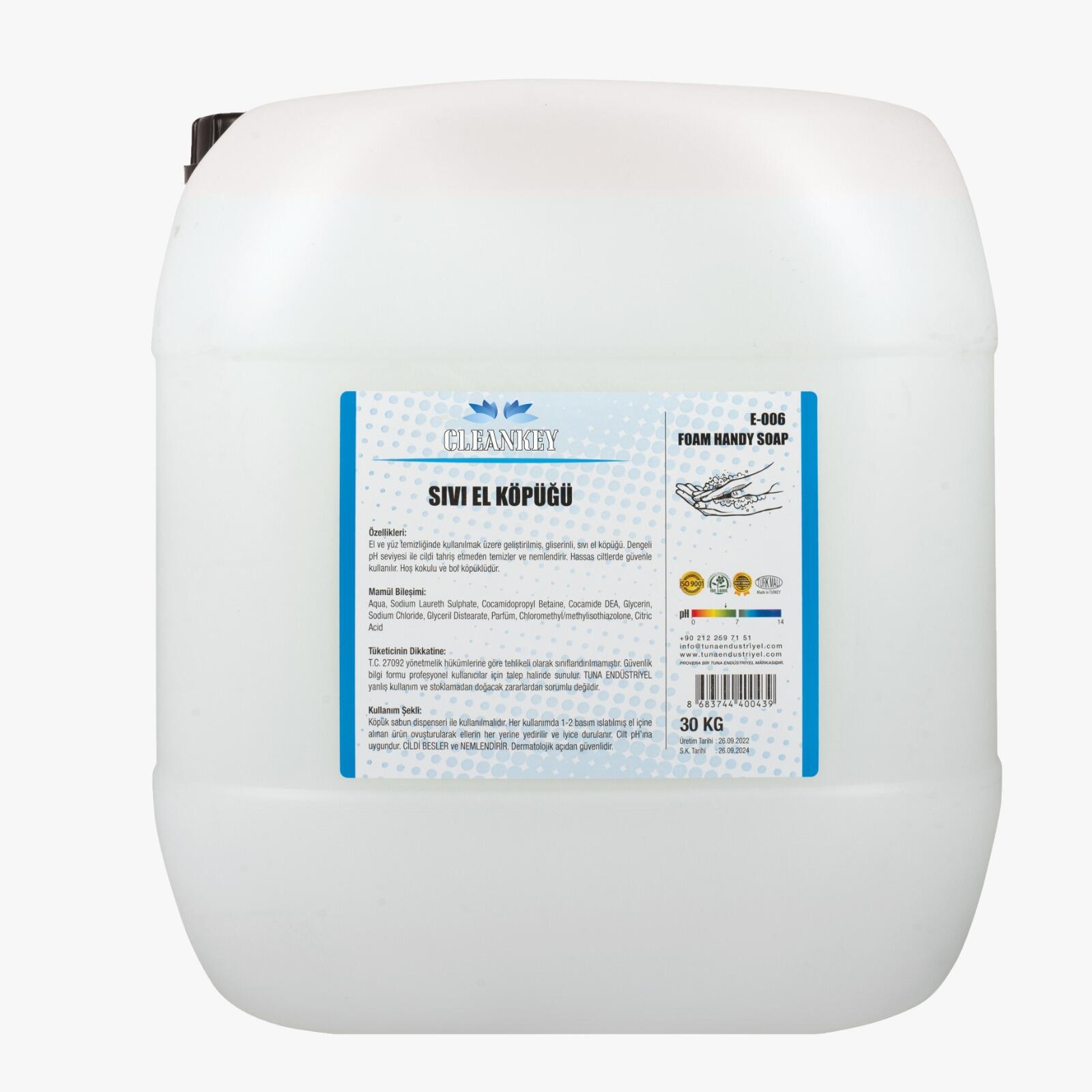 CLEANKEY 30KG KÖPÜK SABUN EV VE İŞYERLERİ ,HASTANELER,RESMİ KURUMLAR İÇİN ÖZEL OLARAK ÜRETİLDİ TEMİZLİK VE HİJYENİN ÖNEMLİ OLDUĞU GÜNÜMÜZDE KREMLİ YAPISI İLE TEMİZLİK İHTİYACINI EKONOMİK OLARAK KARŞILIYOR